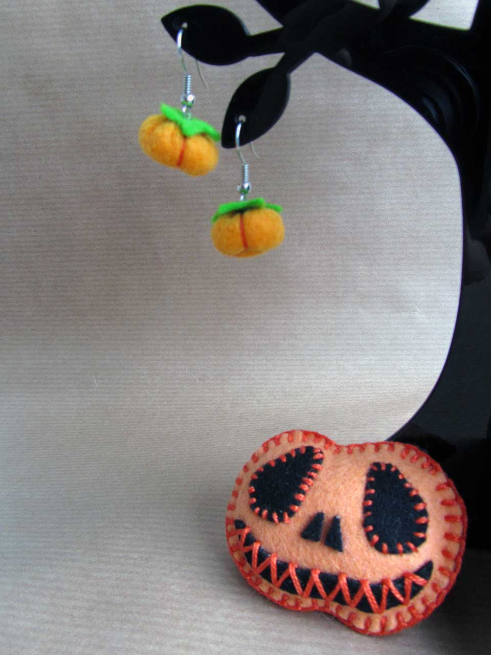 Y tanto me emocioné que acabé plantando un árbol de calabazas. Lo del árbol puede parecer raro, pero las calabazas de fieltro se dan mejor en los árboles de plástico que plantadas en la tierra, hacedme caso, que esta cosecha me salió buena.